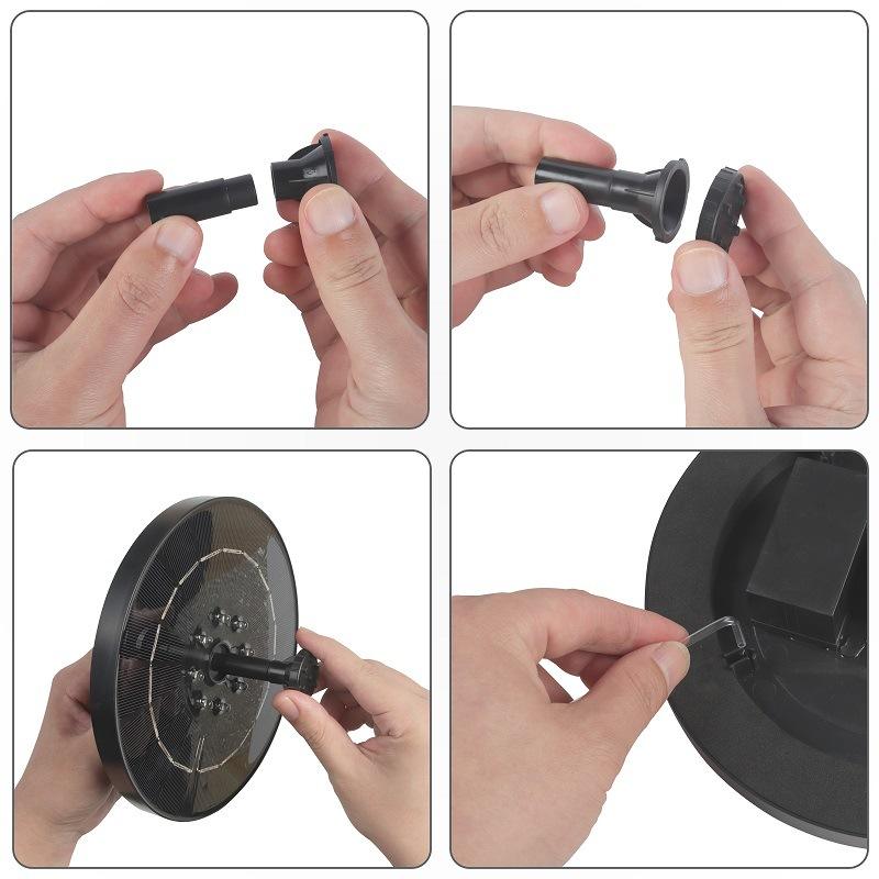 Pompe de fontaine solaire à 4 tuyaux fixes LED IP68 Pompe à eau flottante pour bain d'oiseaux Aquarium 3.5W Panneau solaire pour jardin