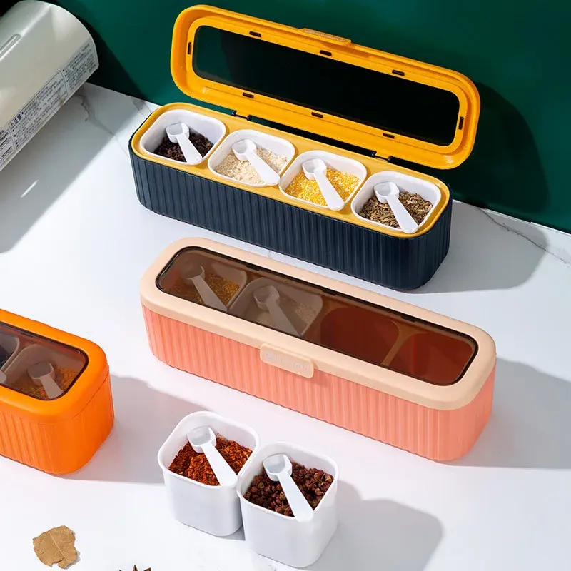 Boîte à épices en plastique à 4 compartiments, ensemble de pots à épices, organisateur de cuisine pour salières, poivrières et récipients