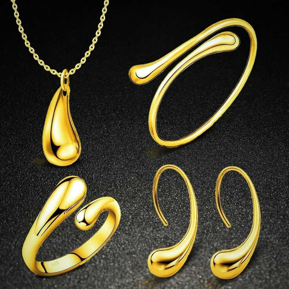 Ensemble de bijoux fins 4-IN-1 plaqué or anti-ternissement comprenant un collier de noix de cajou, un bracelet, des boucles d'oreilles et une bague