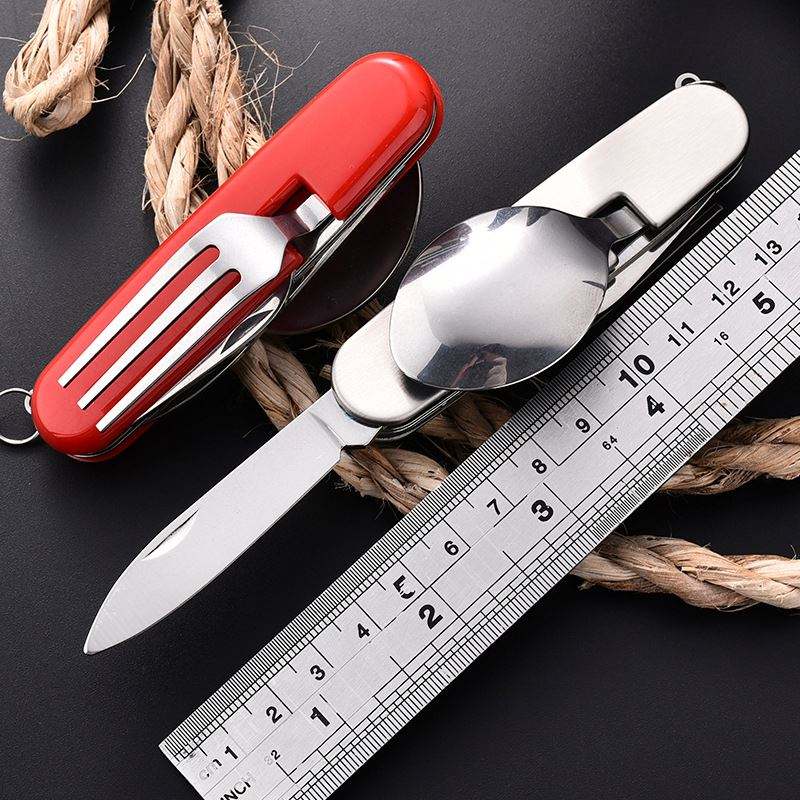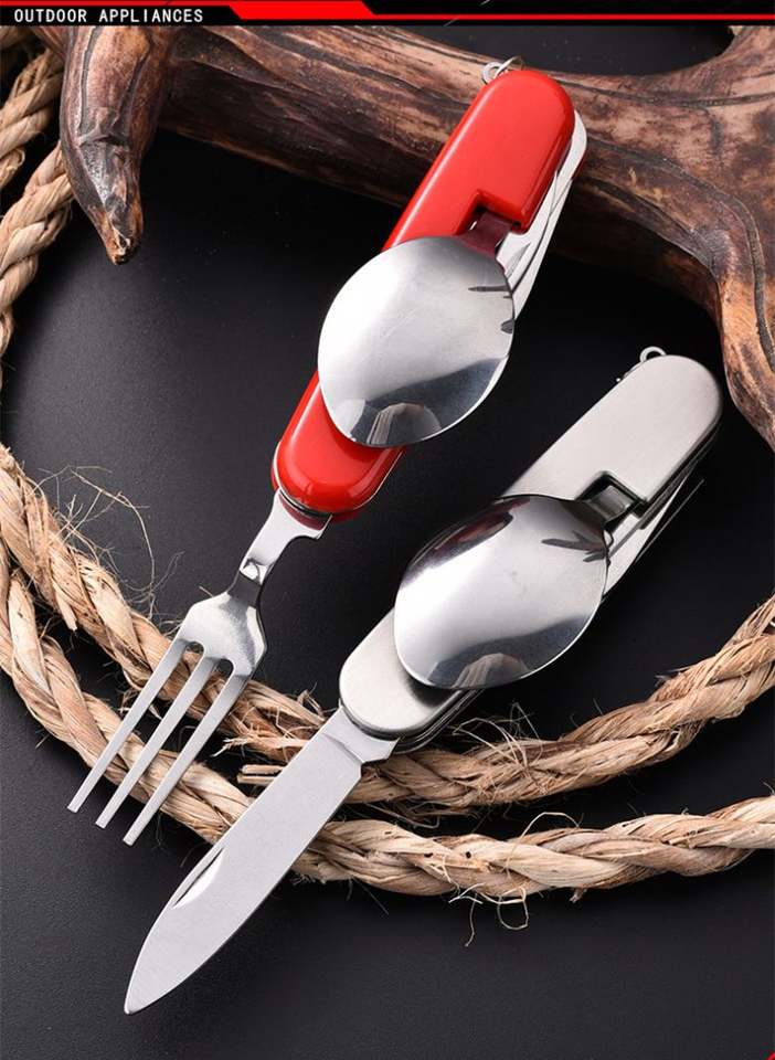 4 en 1 Logo personnalisé pour le camping Accessoires de camping et de randonnée Fourchette pliante Cuillère Couteau Ouvre Set