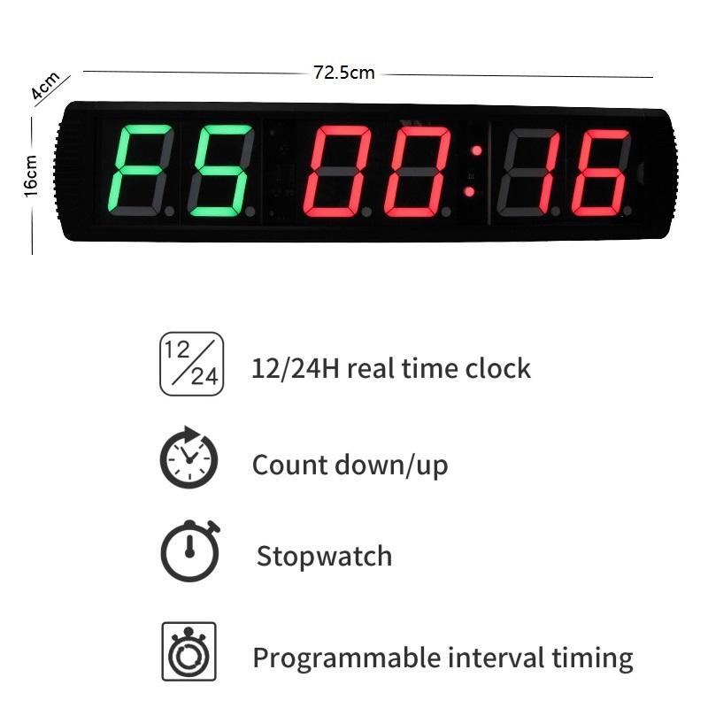 Chronomètre de fitness à 6 chiffres de 4 pouces, minuteur mural de salle de sport, entraînement sportif, réglages de repos, horloge à intervalles LED avec télécommande