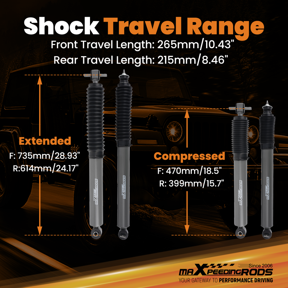 Longueur du ressort:F 530mm/20,86 "R 406mm/15,98"