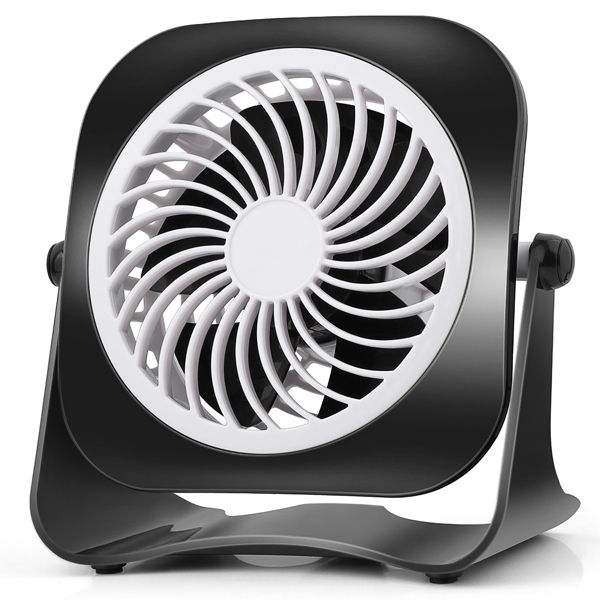 Mini ventilateur de bureau USB de 4 pouces, silencieux et puissant, 2 vitesses, faible bruit, rotation à 360 degrés, câble de 3,8 pieds, alimenté par USB, ventilateur de bureau efficace et rafraîchissant
