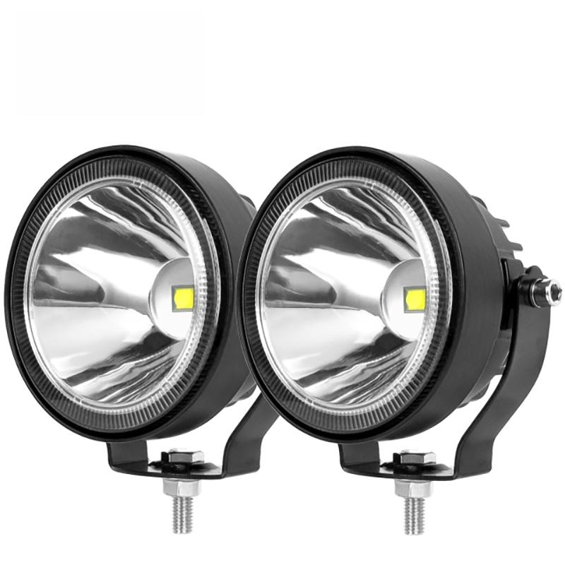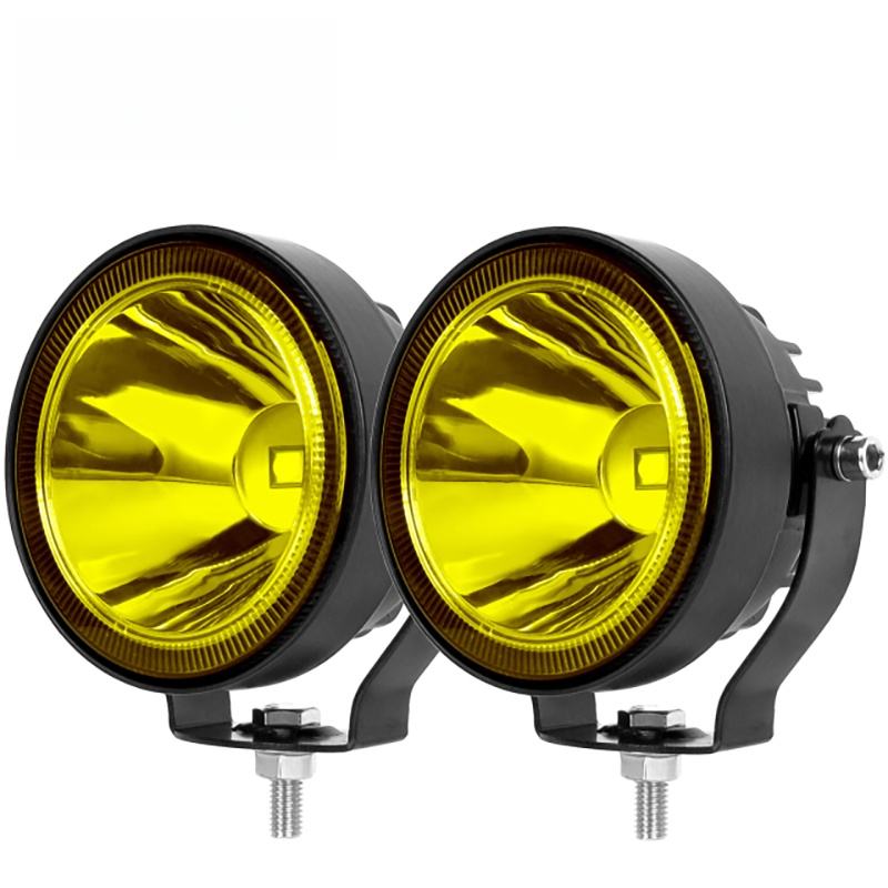Phare avant de moto de 4 pouces, feux antibrouillard LED, lampe de conduite blanche et jaune pour excavateur, tracteur, camion