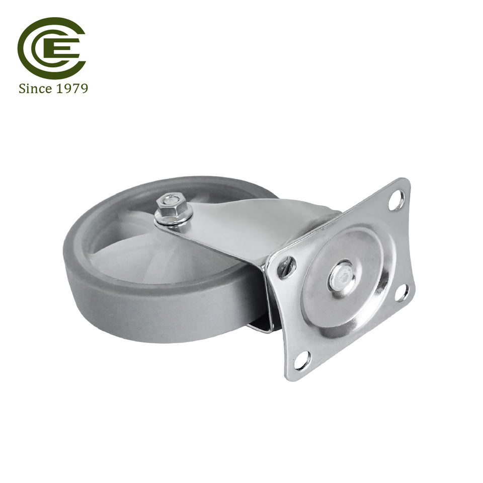 Nom du produit:Roue pivotante silencieuse en TPR gris de 4 pouces avec roulement chromé pour chariot et meuble.