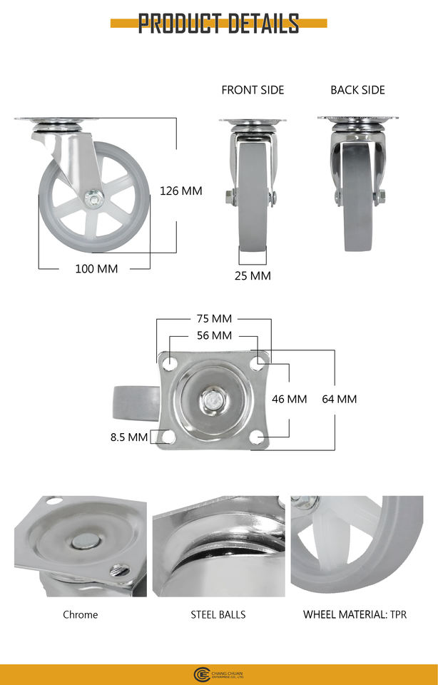 Diamètre de la roue:4 pouces (100 mm)