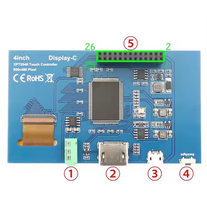 Écran tactile en cuir framboise de 4 pouces avec écran HD MI Résolution IPS 800x480 3B +/4B Stock électronique