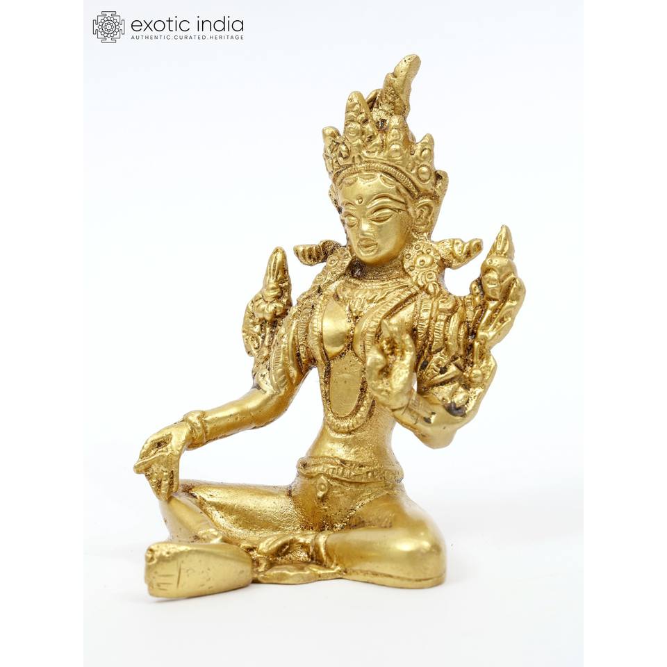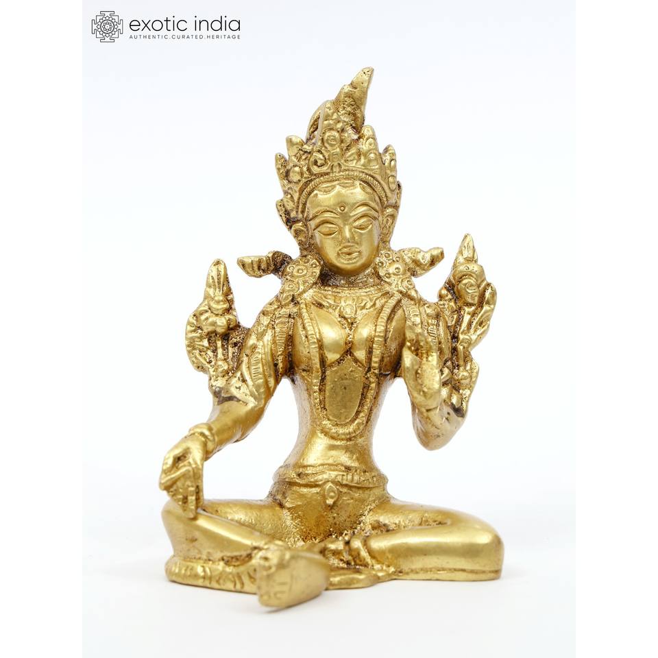 4 Inches déesse bouddhiste tibétaine Tara verte Sculpture en laiton pour la décoration intérieure et le temple Fabriqué en Inde