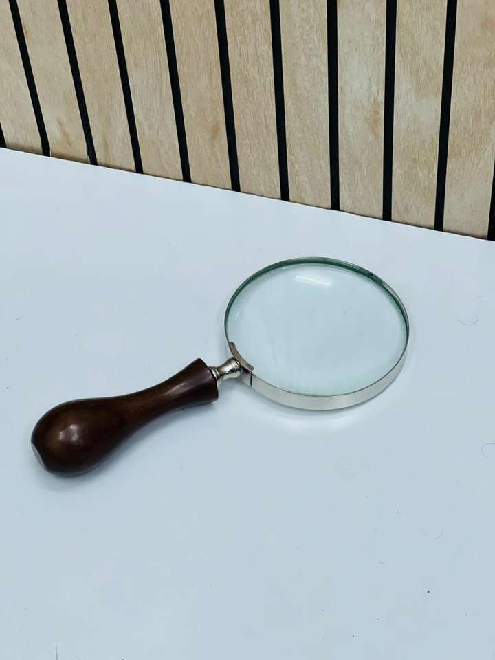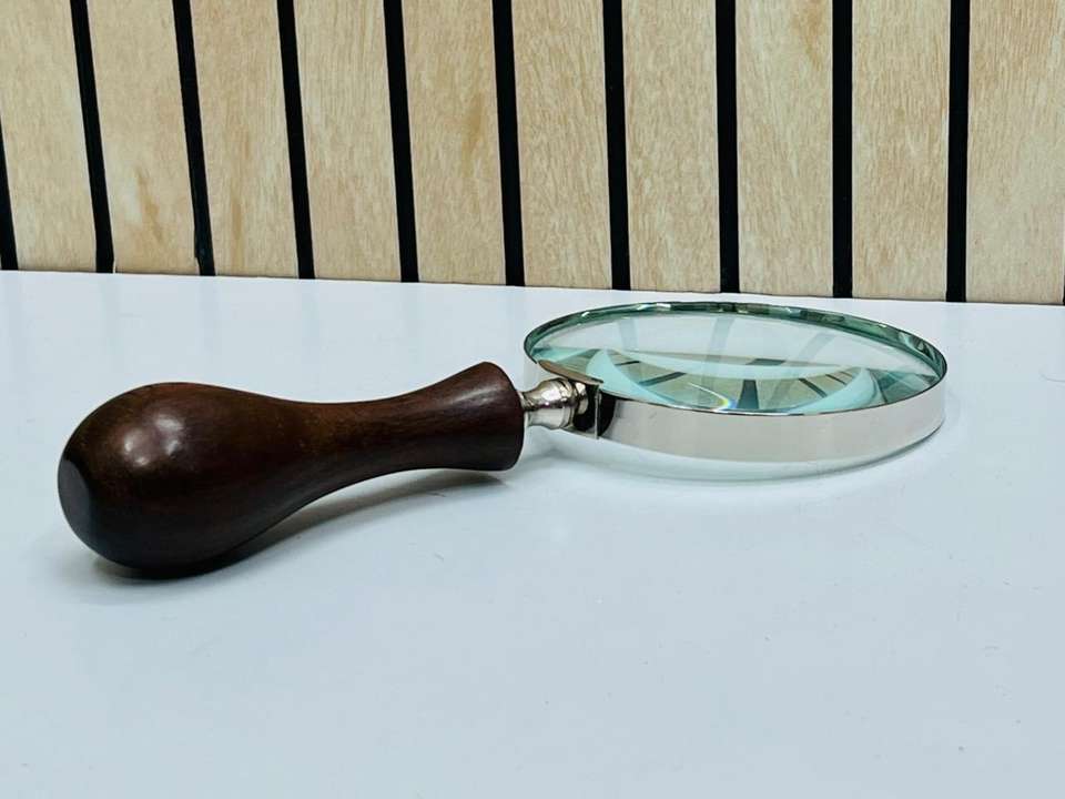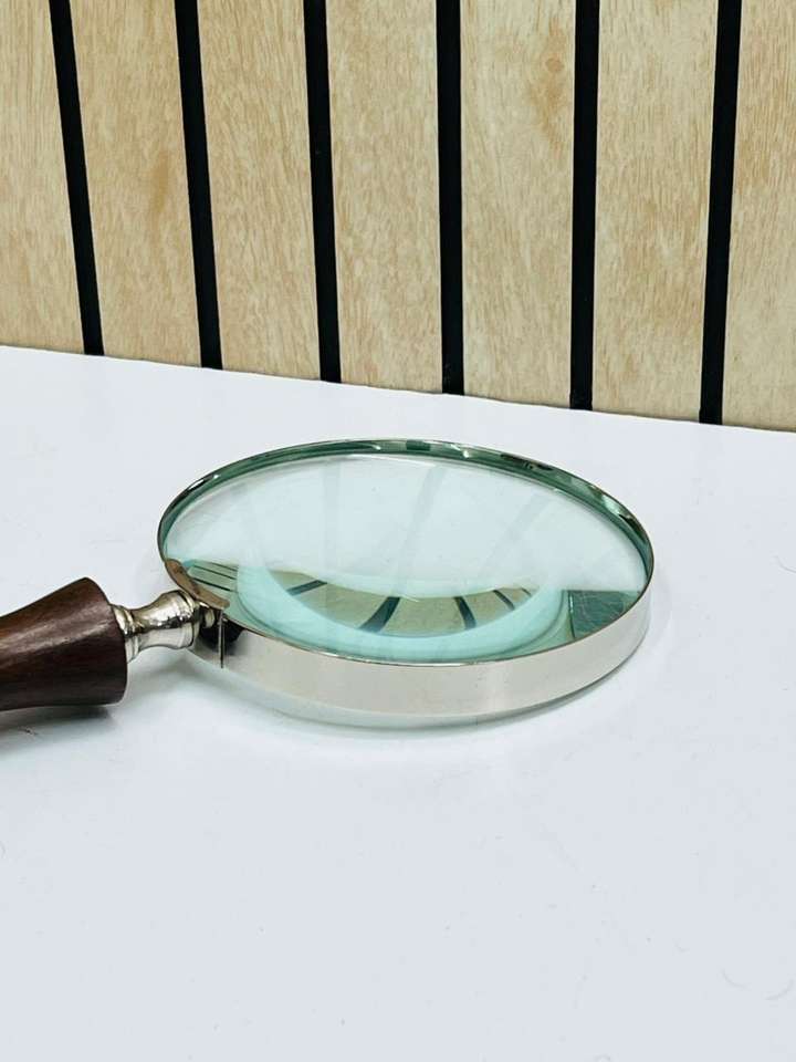 Loupe artisanale durable de 4 pouces avec finition nickelée et poignée ronde en bois