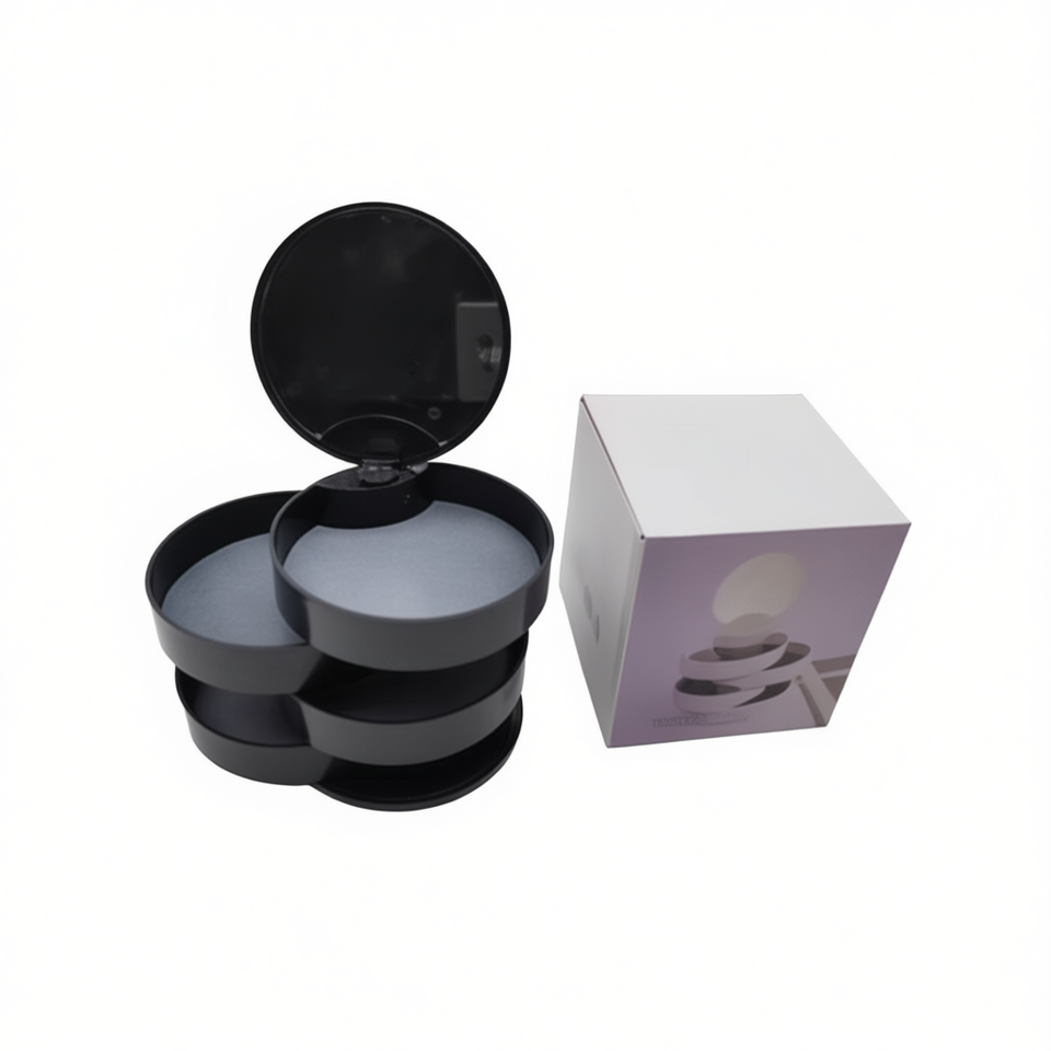 Boîte à bijoux ronde à 4 couches avec miroir, organisateur portable durable pour femmes, design simple et uni, fermeture à couvercle