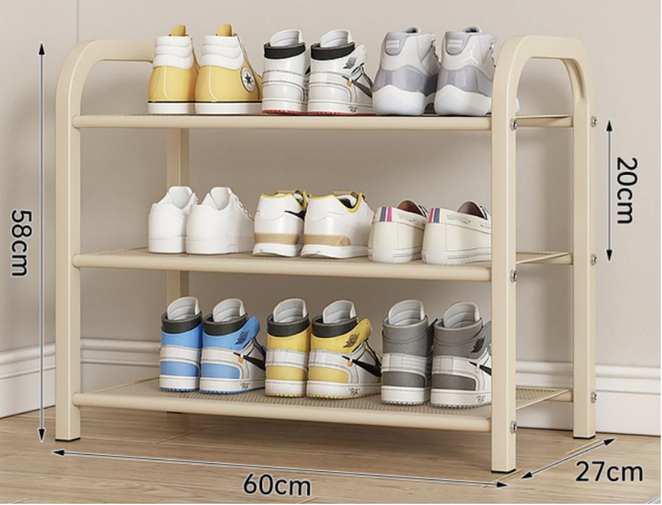 Porte-chaussures multifonctionnel en acier à 4 couches avec finition chromée Porte-vêtements intégré au sol et porte de rangement
