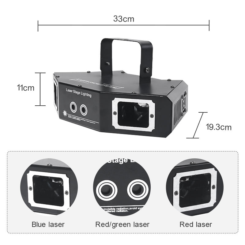 Source laser:Rouge 2pcs * 150mw, bleu 1*200mw, vert 1*50mw