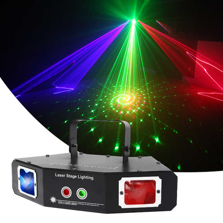 Projecteur lumineux à faisceau laser activé par 4 lentilles, son dj bon marché, éclairage de scène disco, de noël, pour boîte de mariage