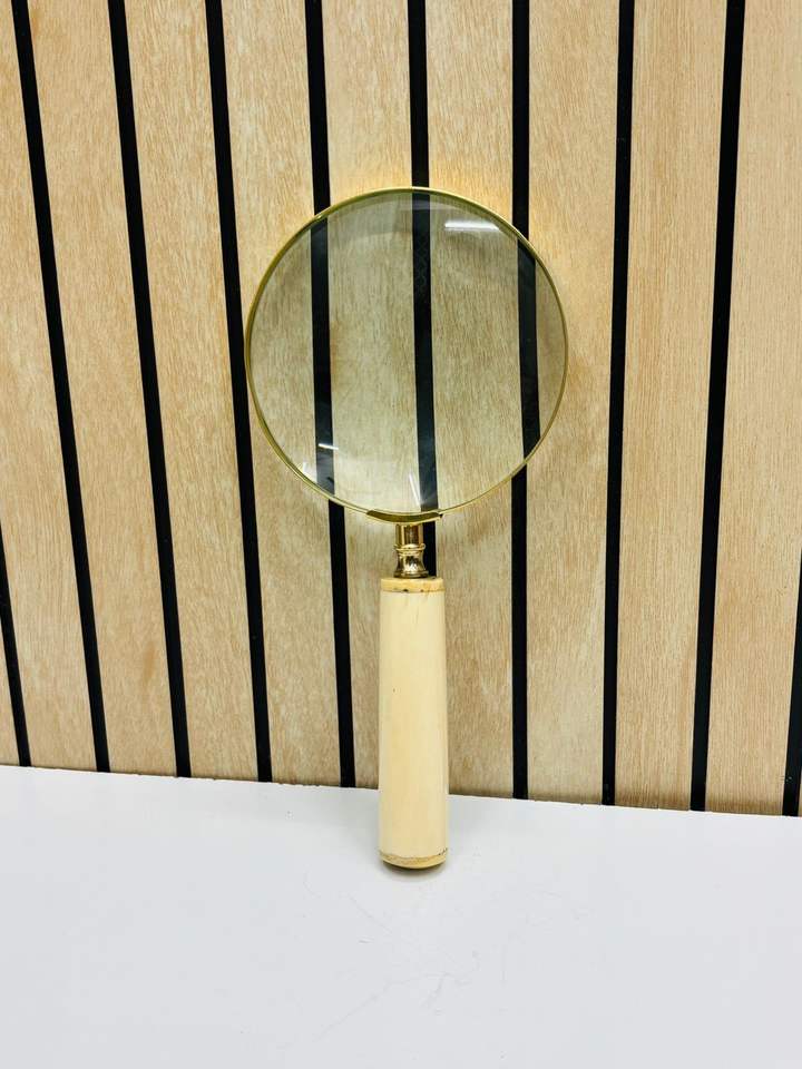 Loupe de poche moderne de 4 pouces, faite à la main, durable, avec cadre en laiton et poignée en os