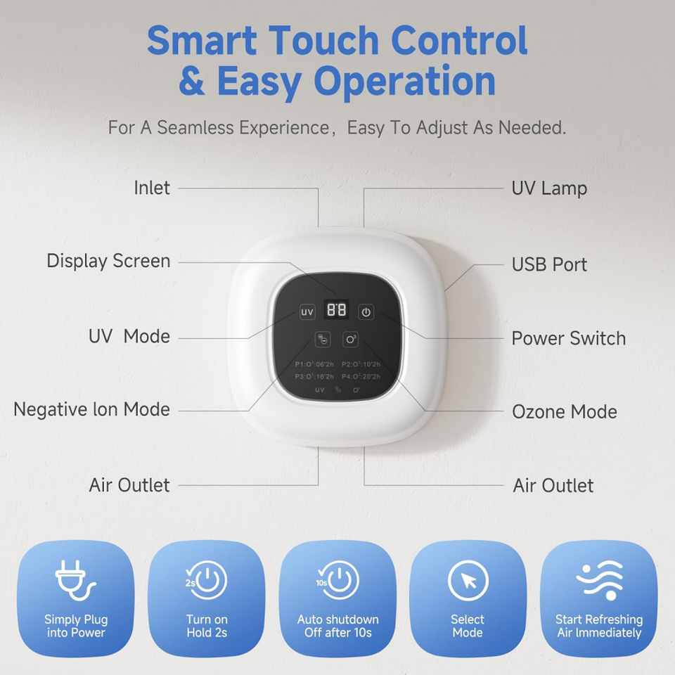 Purificateur d'air à ozone moderne en plastique à 4 modes de lumière UV pour l'élimination des odeurs de crottes de chien et de chat, éliminateur d'odeurs d'animaux pour petits espaces