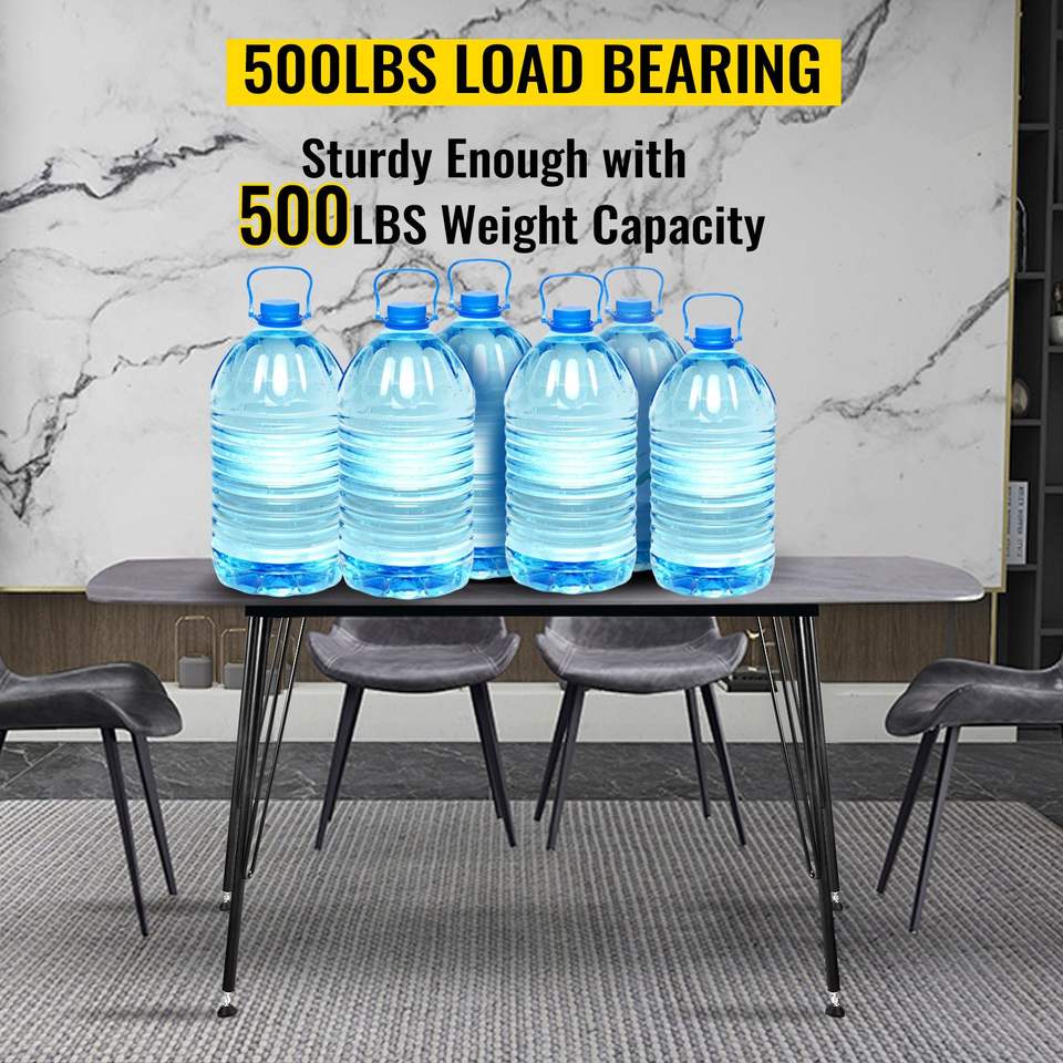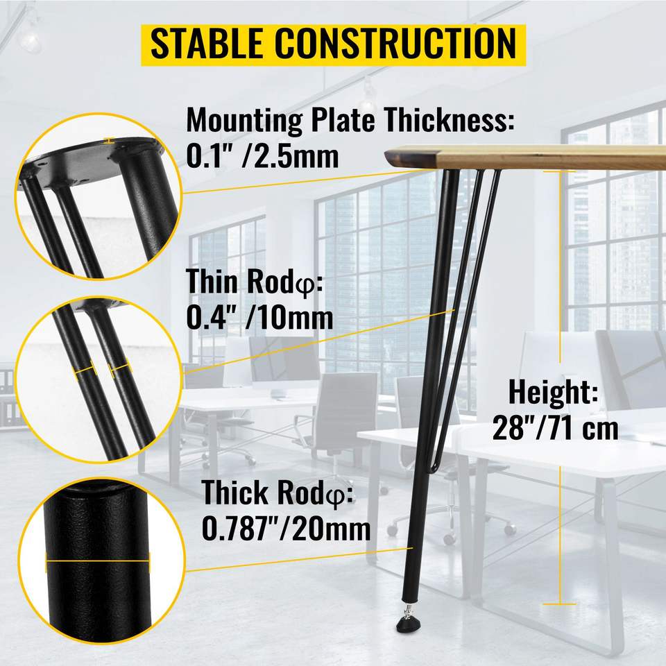 Lot de 4 pieds de table en fer forgé durables de 28 po avec 3 tiges, incluant des pieds en caoutchouc – Noir, pour tables et supports de bancs DIY
