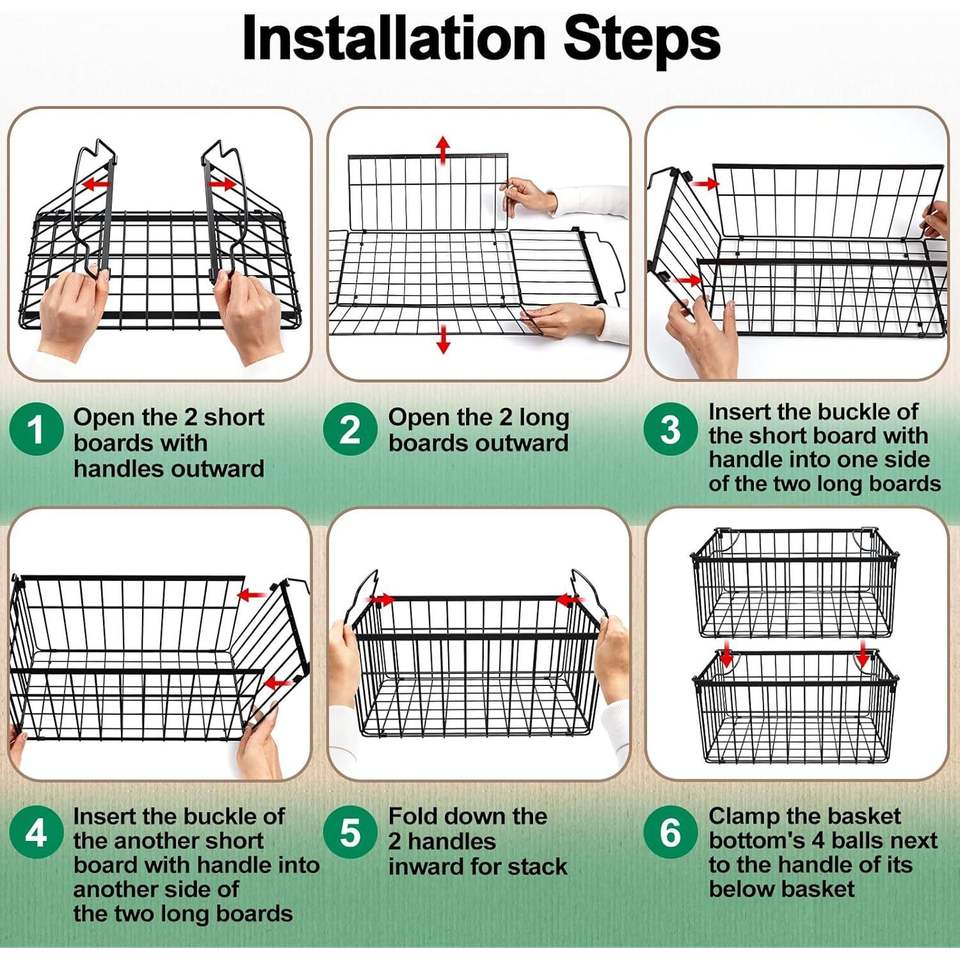 Lot de 4 bacs de rangement noirs pour congélateur, empilables et pliables avec poignées, profonds, pour une gestion efficace du réfrigérateur