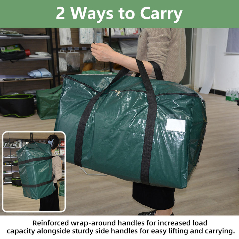 Lot de 4 sacs de déménagement pliables extra larges multifonctionnels avec fermetures éclair et poignées de transport, rangement durable pour vêtements, chaussures et outils