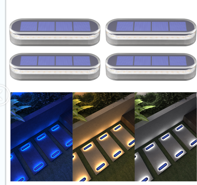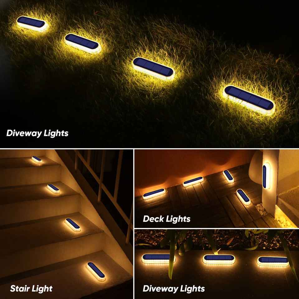 Lot de 4 lampes solaires LED étanches IP68 pour marches, allumage/extinction automatique, pour couloir, allée, porte, garage