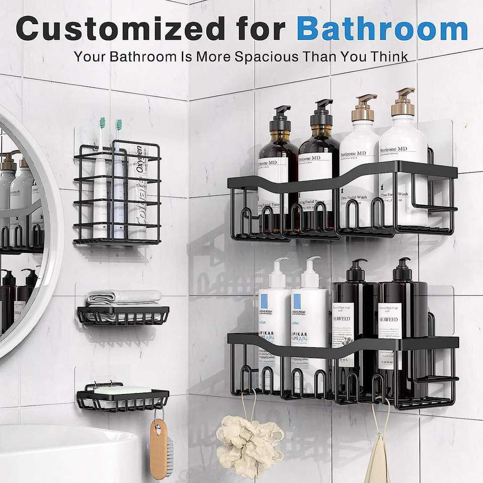 Lot de 4 étagères de rangement murales d'angle sans perçage, antirouille, pour douche et salle de bain