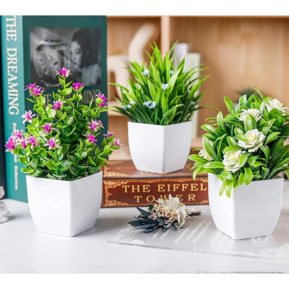 Lot de 4 petites fleurs artificielles pour la décoration du printemps, centre de table, bureau, maison, salle de bain, plantes artificielles