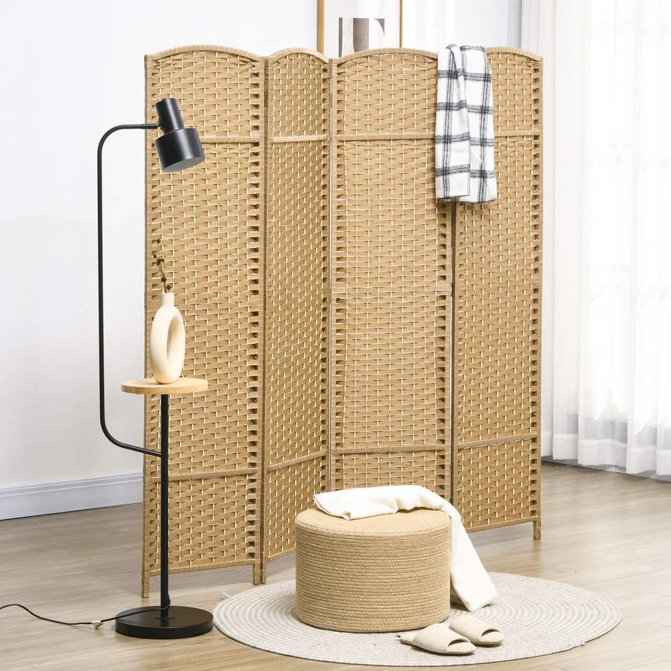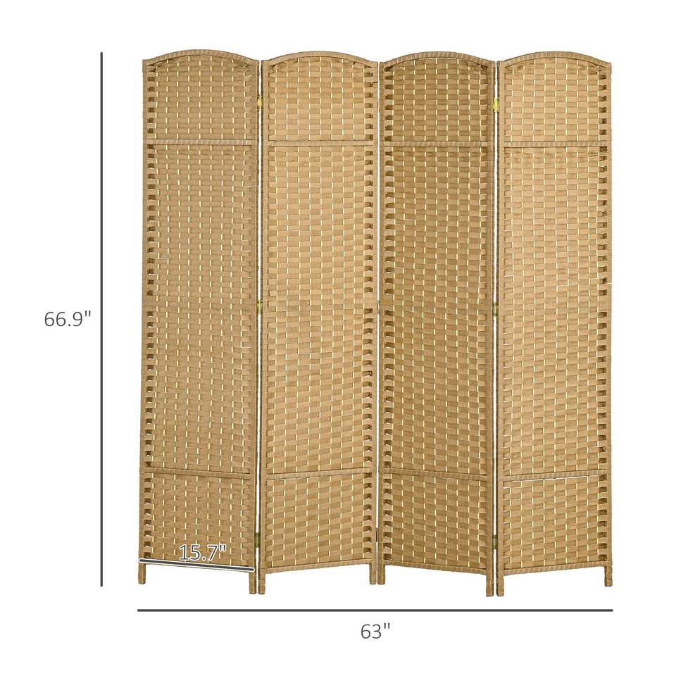 Paravent pliant 4 panneaux de 5,6 pieds de haut en bois naturel, autoportant, pour la maison et le bureau