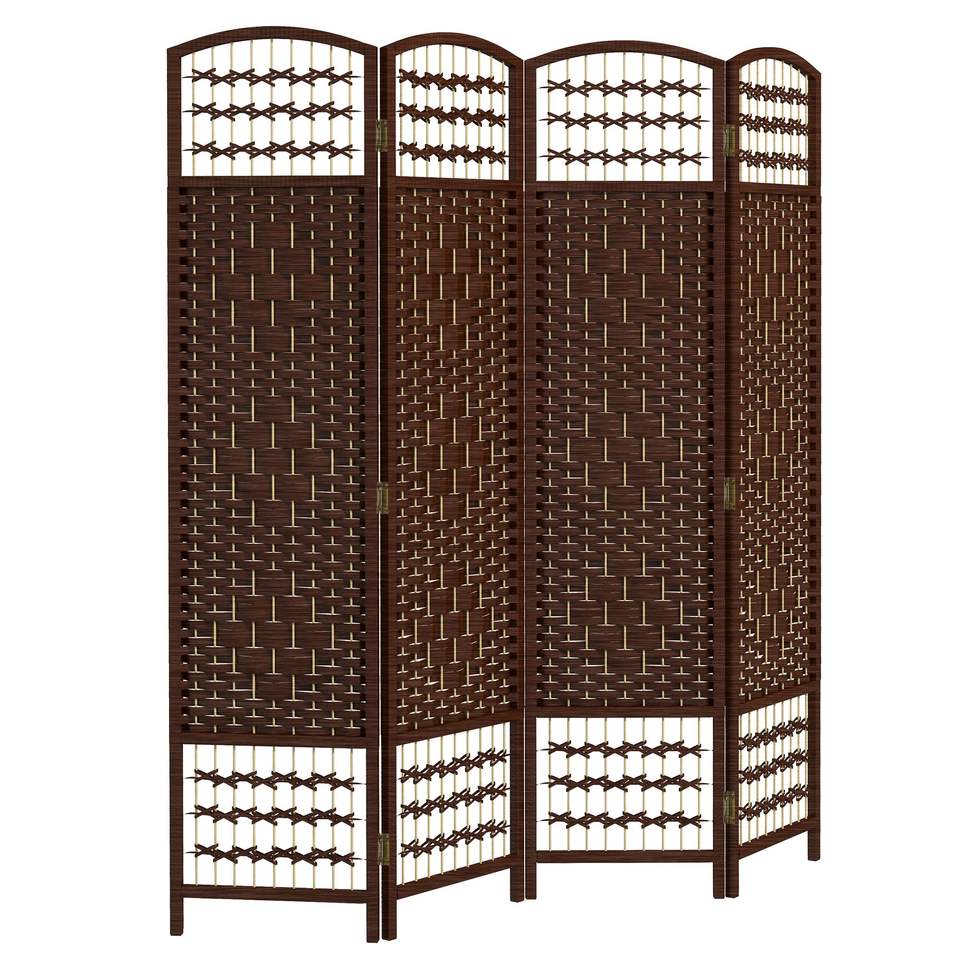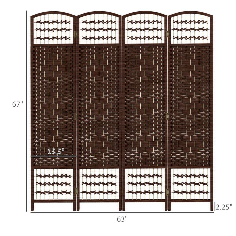 Paravent pliable portable à 4 panneaux en fibre ondulée marron pour la maison et le bureau