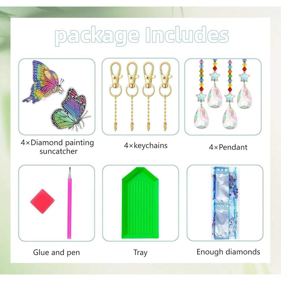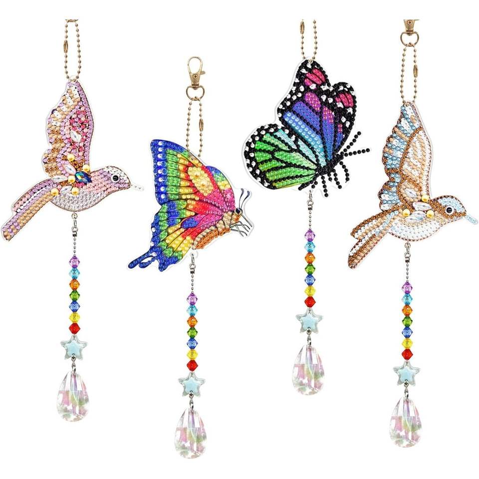 Kits de Peinture Diamant pour Débutants Adultes (4 Pièces) – Motifs Colibris et Papillons, Décorations en Cristal Prismatique, Attrape-Soleil pour la Maison et l'Extérieur
