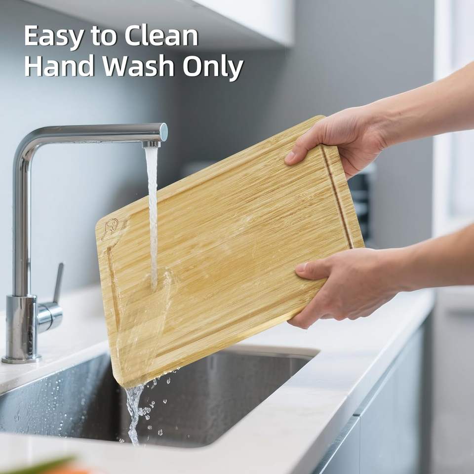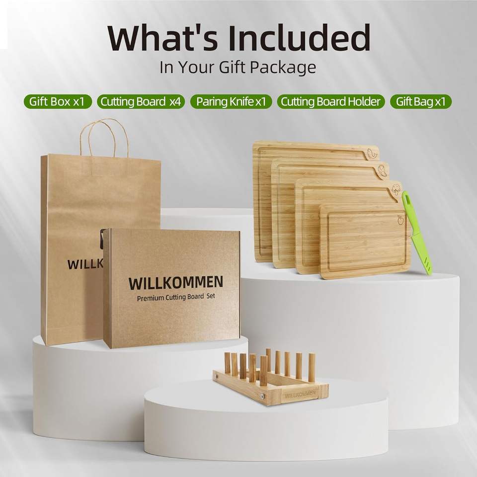 Ensemble de 4 planches à découper en bambou avec support, planche à découper de cuisine avec rainure pour le jus, plateau de service pour viande, légumes, fruits