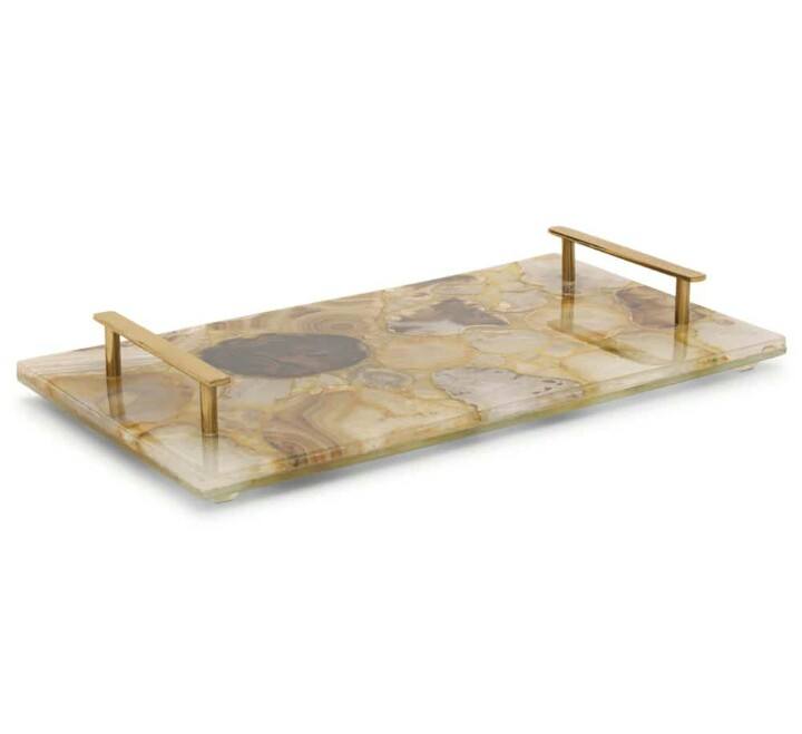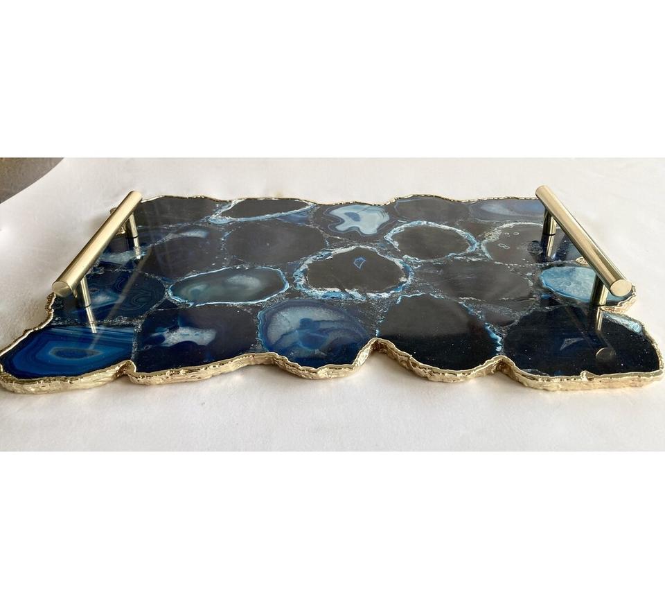 Set de 4 sous-verres Plateaux en agate pour la maison et l'hôtel Plateau de service en agate avec poignée en métal Plateau à bijoux en agate pour article cadeau