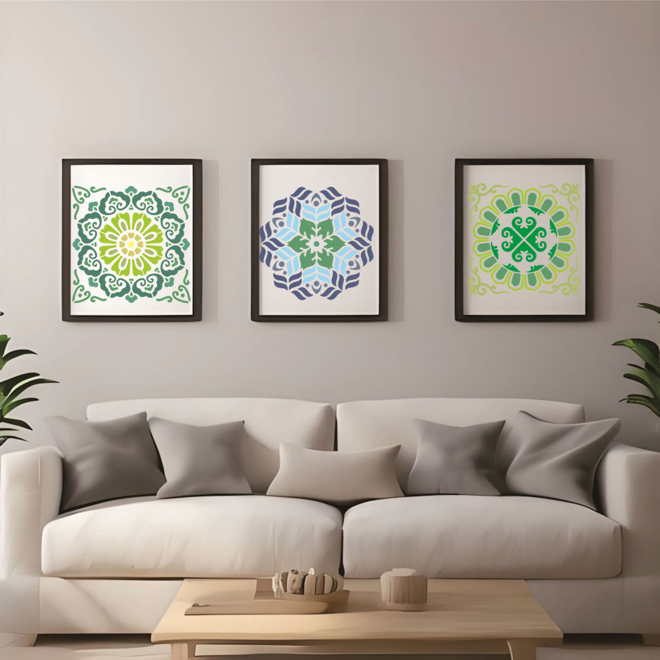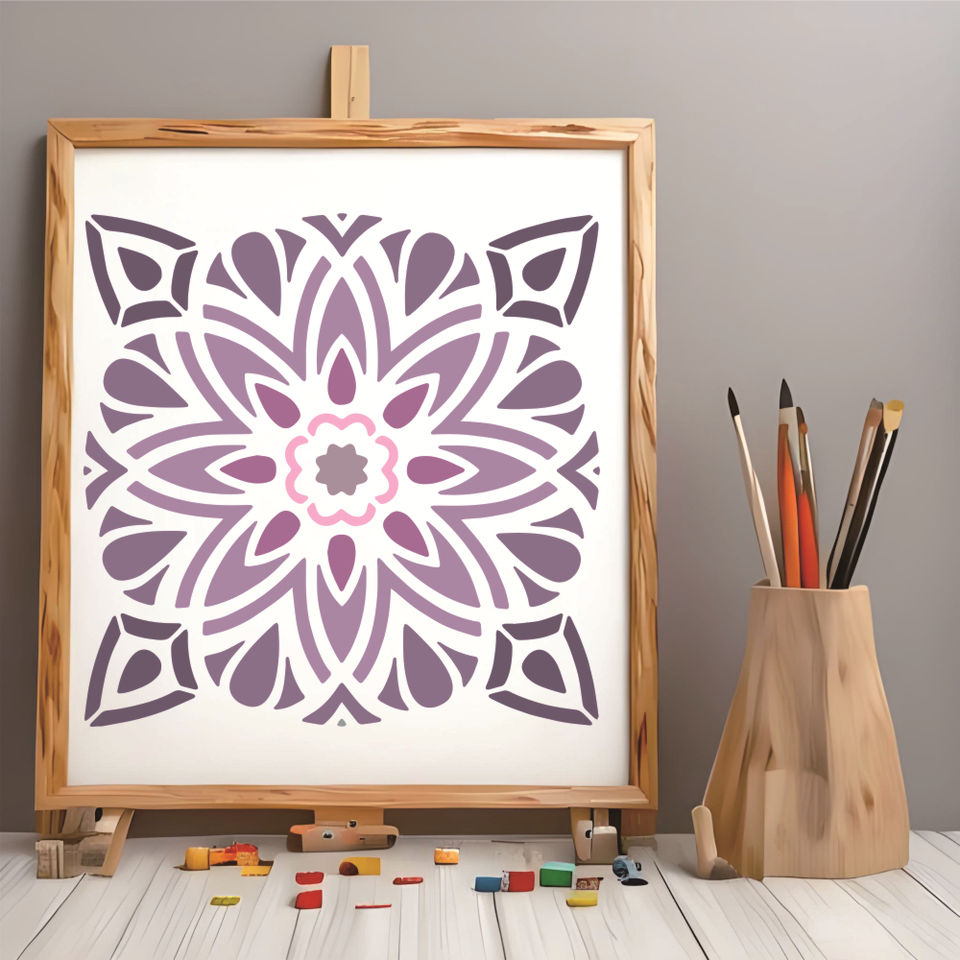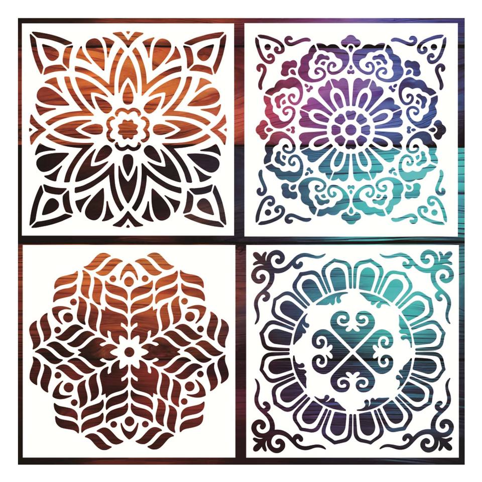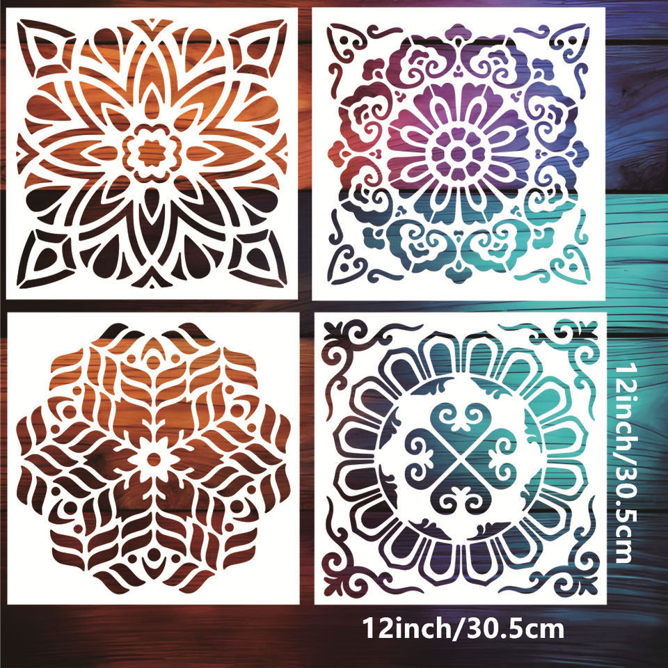 4 Pcs Grands Pochoirs Réutilisables, Pochoirs Mandala pour Peinture DIY Art Scrapbook Tissu Meubles sur Bois, Sol, Mur, Carrelage