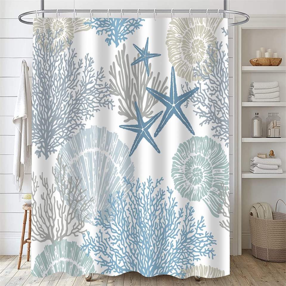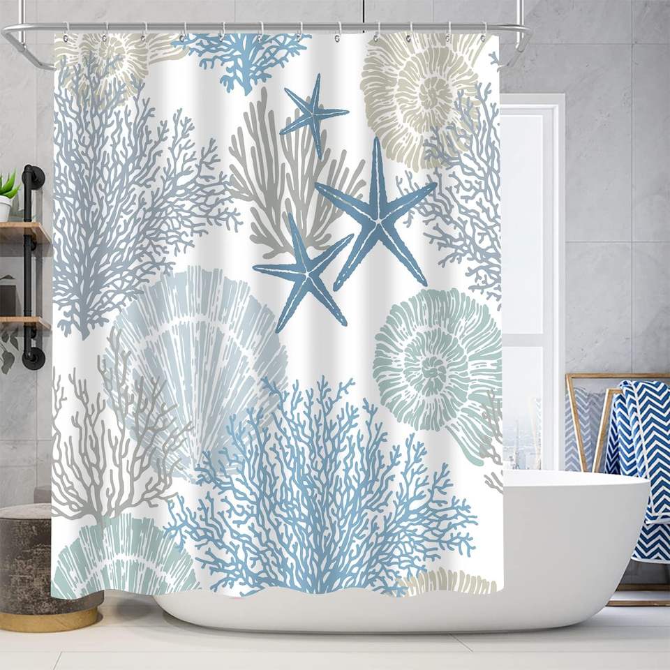 Ensemble de salle de bain 4 pièces bleu nautique Matériau PS avec rideau de douche et tapis pour décoration intérieure ou hôtel