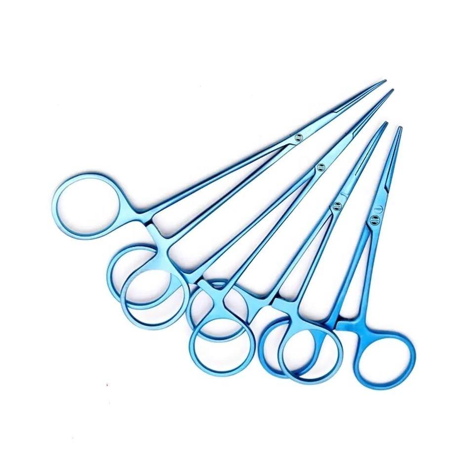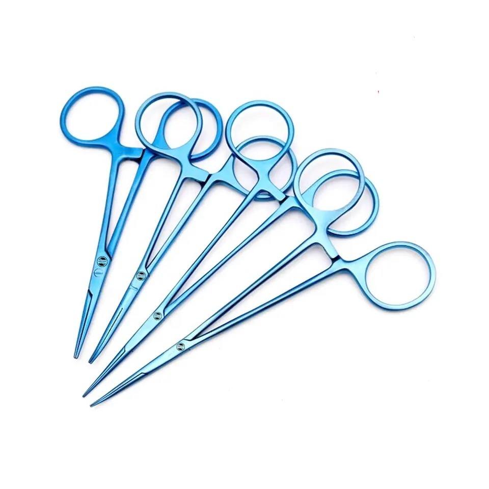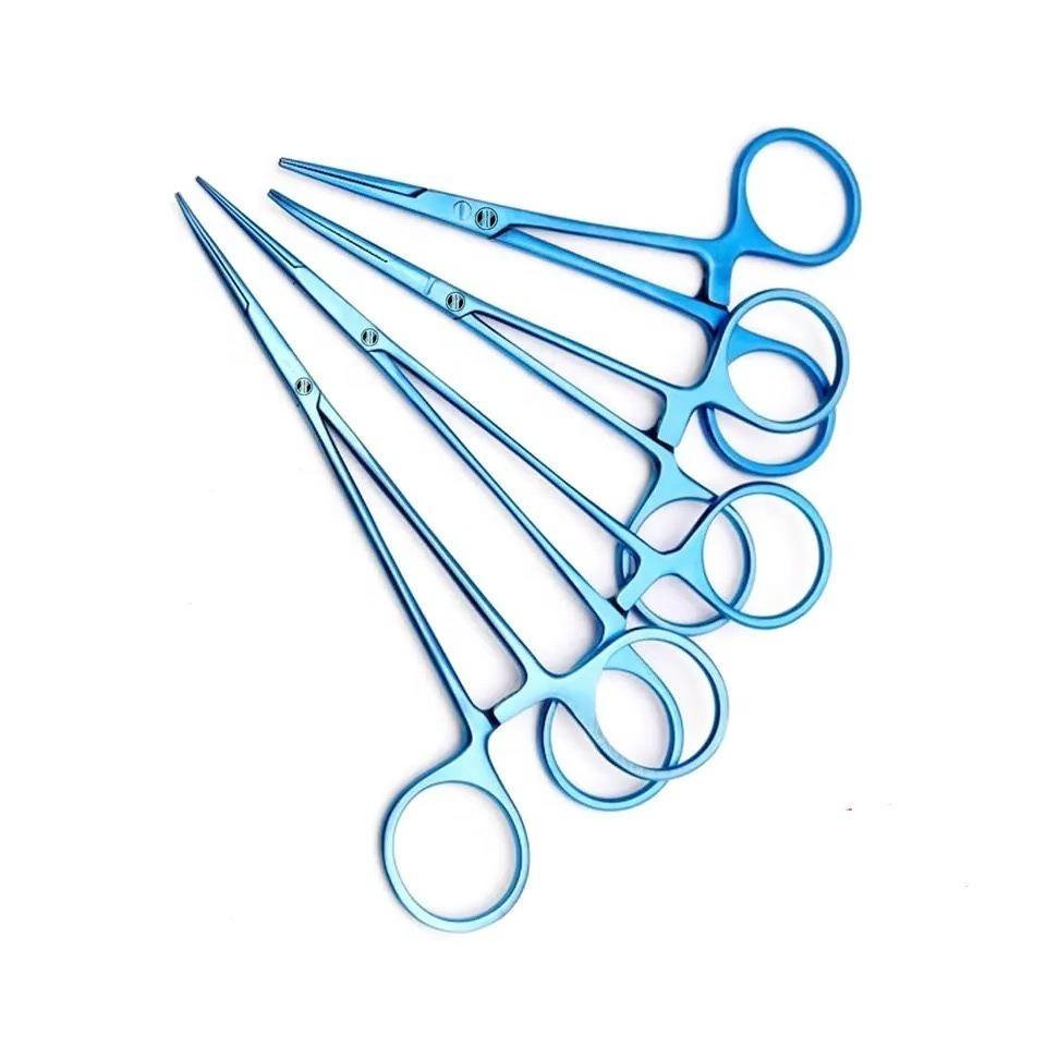 Jeu de 4 pinces hémostatiques à manche droit Taille: 5 "& 5.5" Titanium Instrument chirurgical Hemostat dentaire