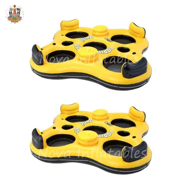 Île flottante gonflable pour 4 personnes, flotteur de piscine social jaune avec porte-gobelets pour le plaisir en groupe