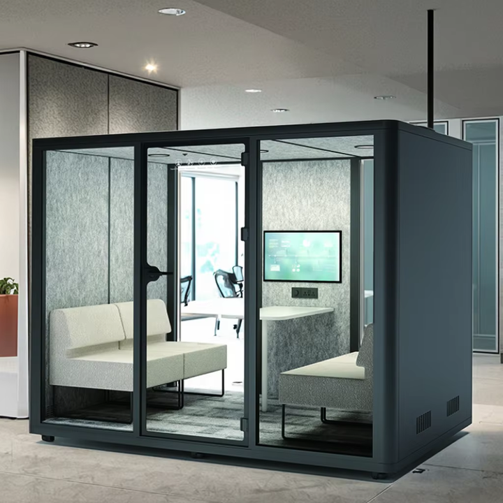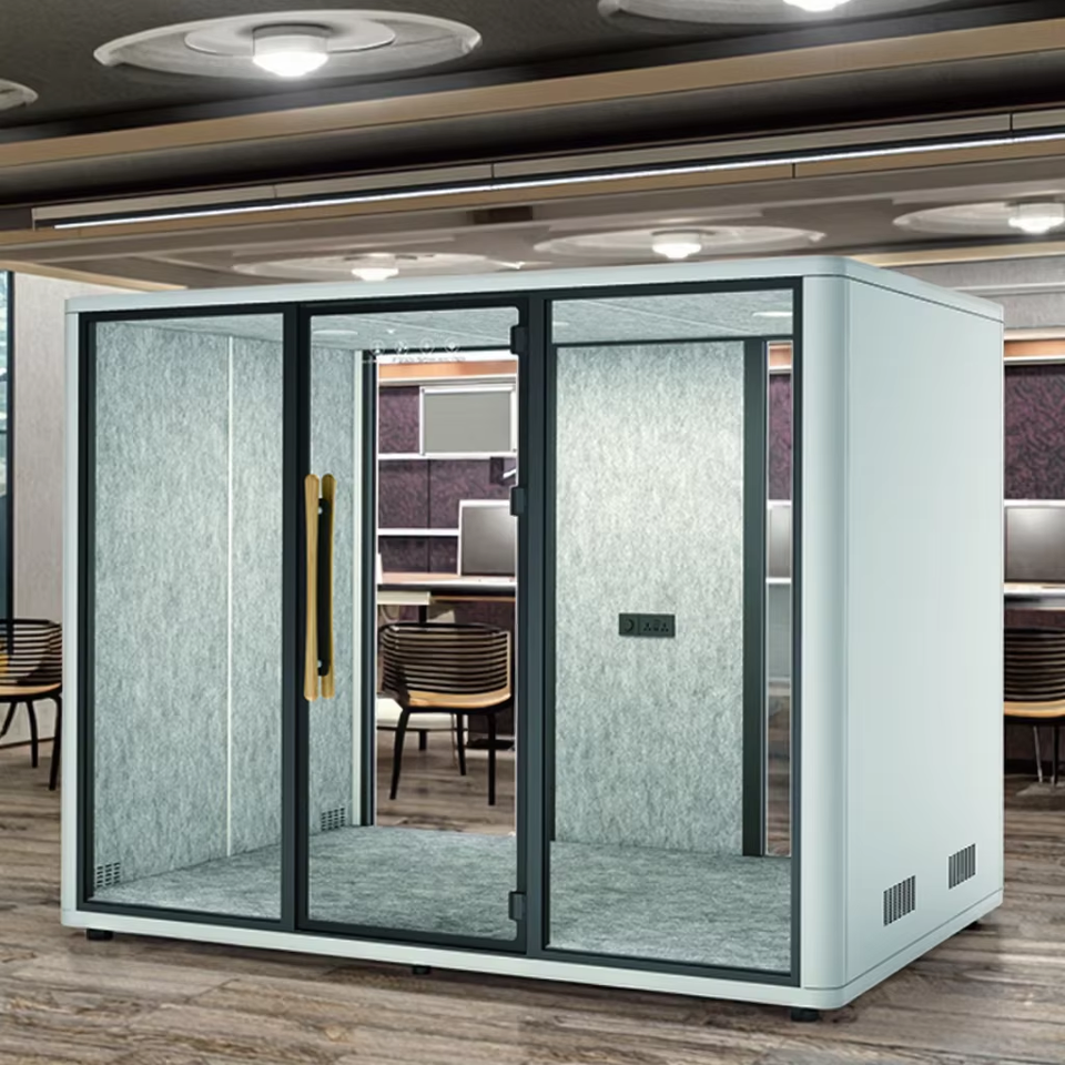 Cabine de réunion modulaire pour 4 personnes, insonorisée, écologique, pour les appels téléphoniques au bureau, les espaces de travail, les hôpitaux et les hôtels.