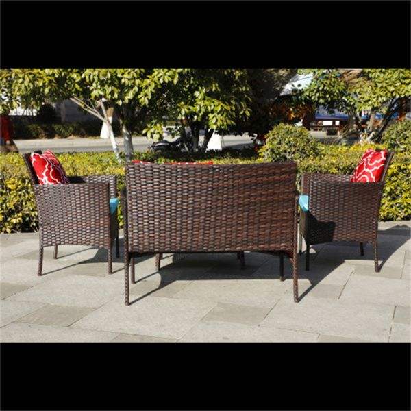 Canapé d'extérieur en rotin marron 4 pièces avec coussins, ensemble de meubles de patio