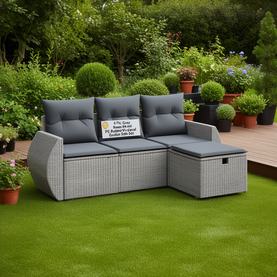 Ensemble de canapé de jardin modulaire en rotin PE gris 4 pièces, mobilier d'extérieur moderne