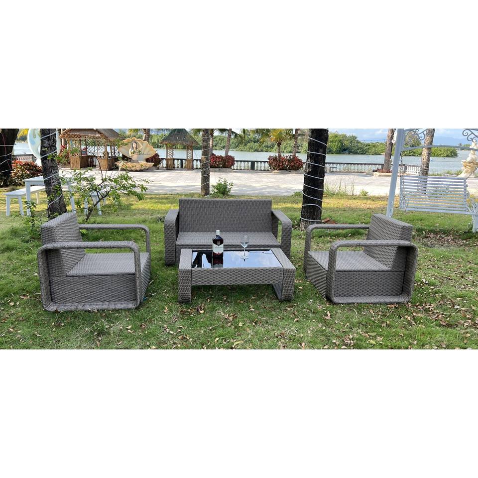 4-Piece PE Rattan Outdoor Garden Sofa Set Includes 2 Armchairs 1 Loveseat 1 Glass-Top Coffee Table with Cushions