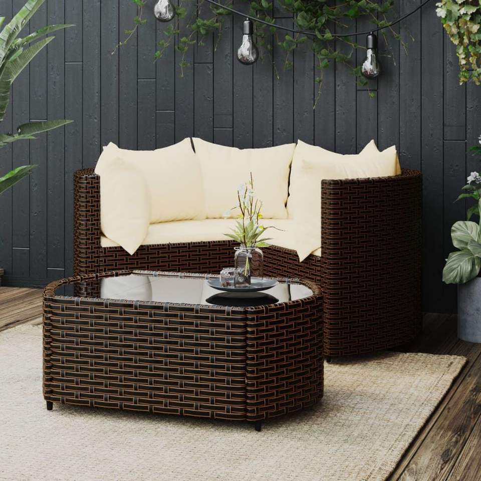 Ensemble de salon de jardin en rotin PE brun, 4 pièces