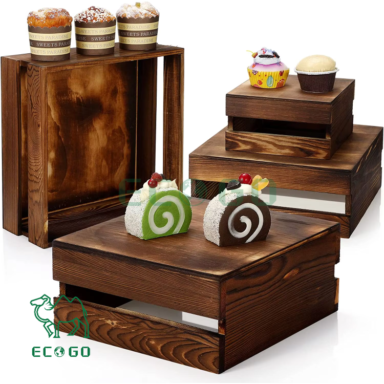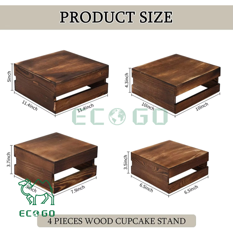 4 pièces décoratives pour dessert, apéritif, support de gâteau, présentoir de cupcakes en bois rustique pour décoration de fête