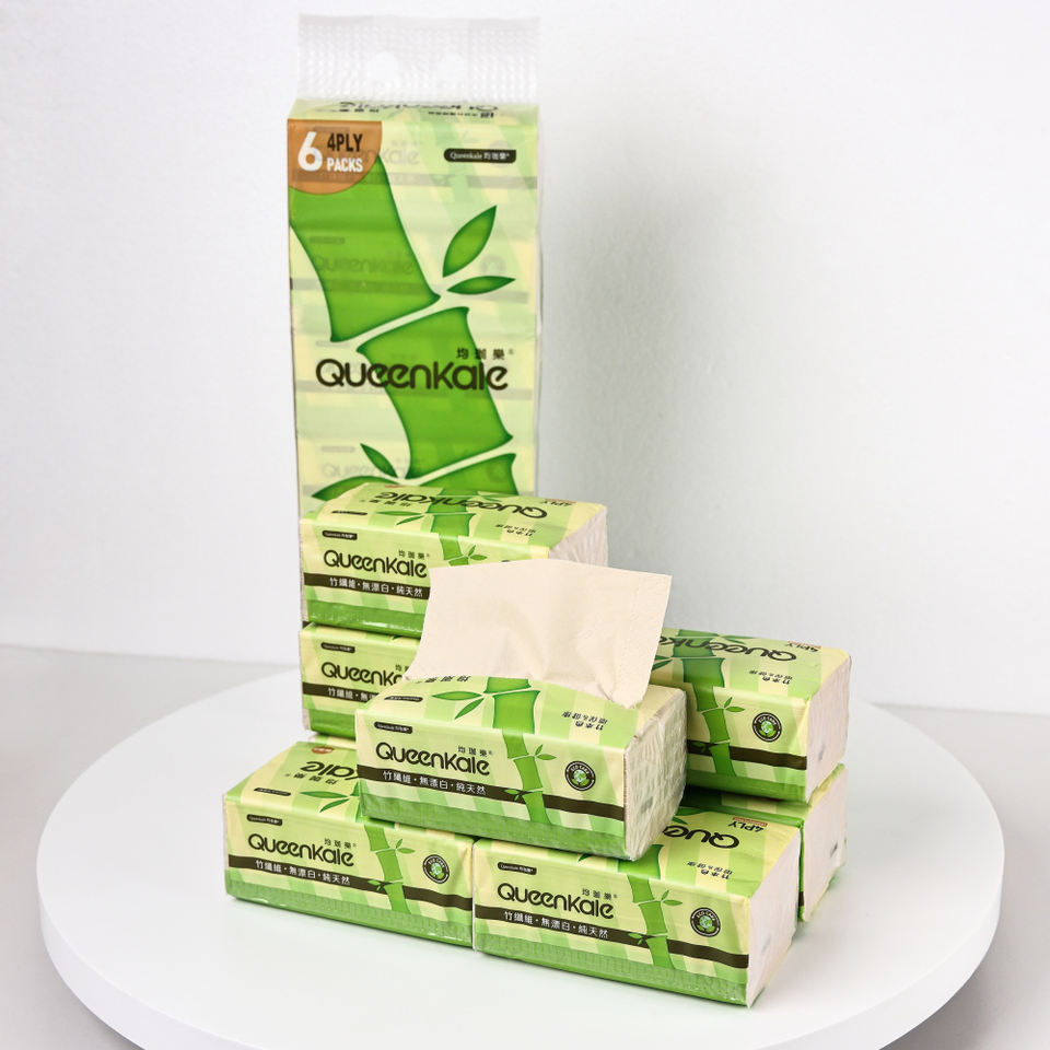 Mouchoirs en papier 4 plis doux en paquet et en feuilles détachées, 100 % pulpe de bambou, pour usage domestique, en boîte