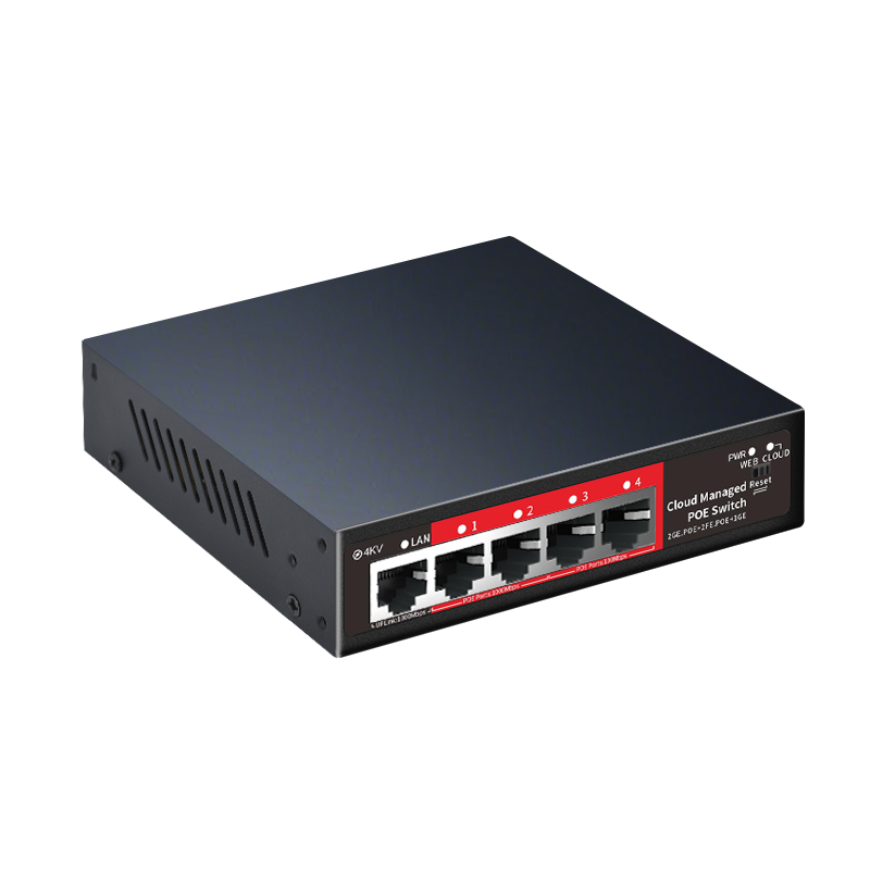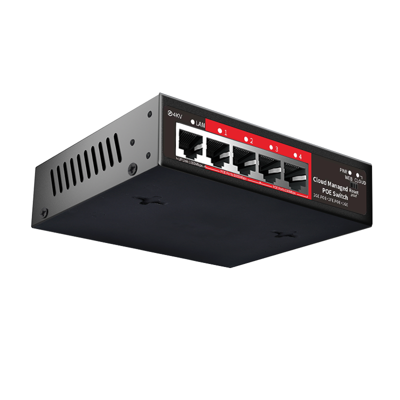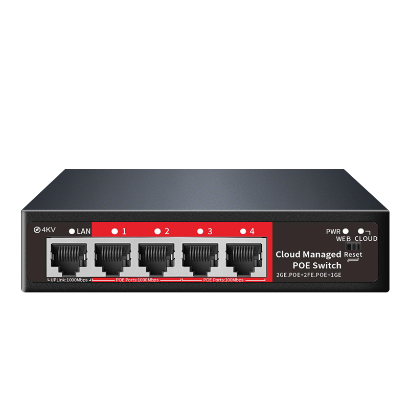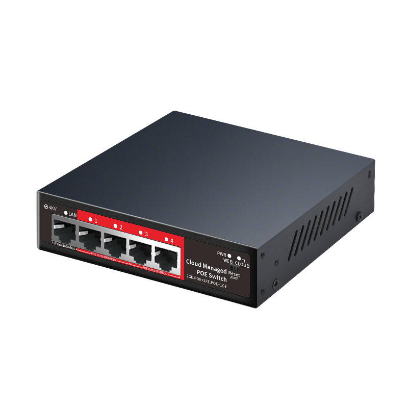 Switch PoE géré dans le cloud à 4 ports avec 2x 100M, 2x 1000M PoE, 1x 1000M port Uplink, prise en charge VLAN pour Dahua/Caméras