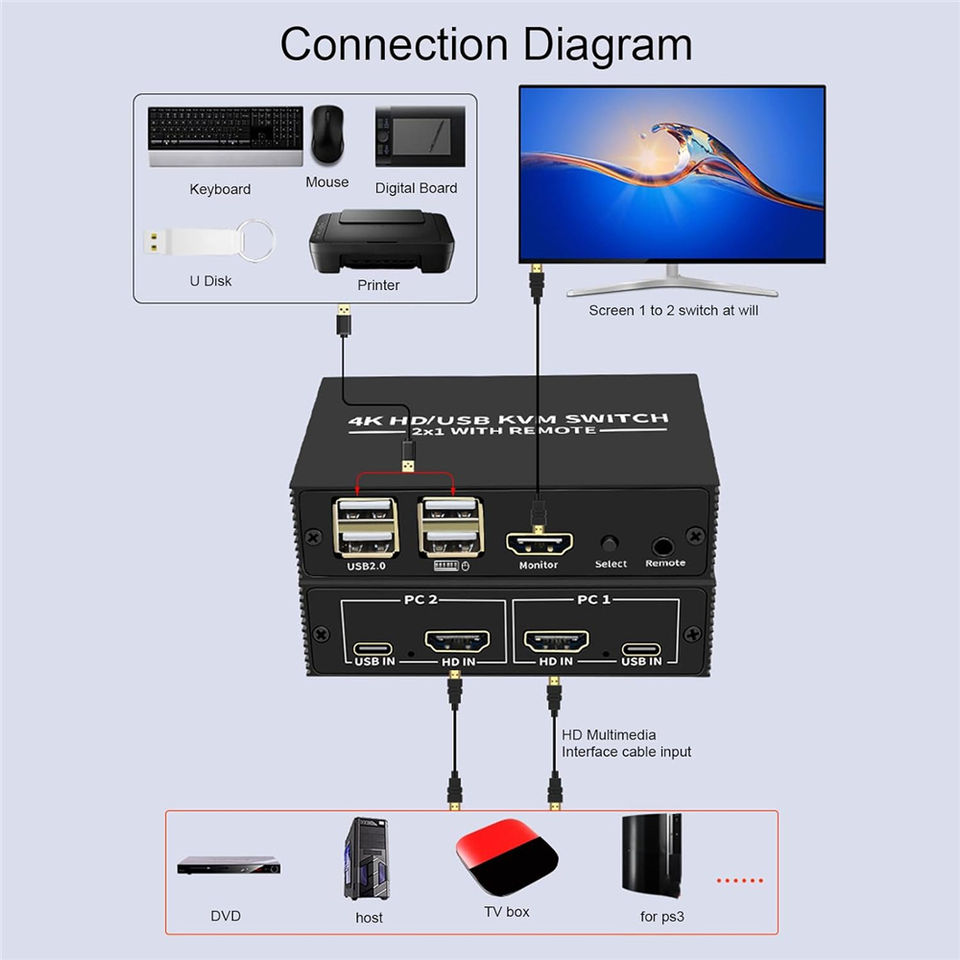 2x1 HDMI KVM Switch4 Port HDMI 2.0 KVM Switch