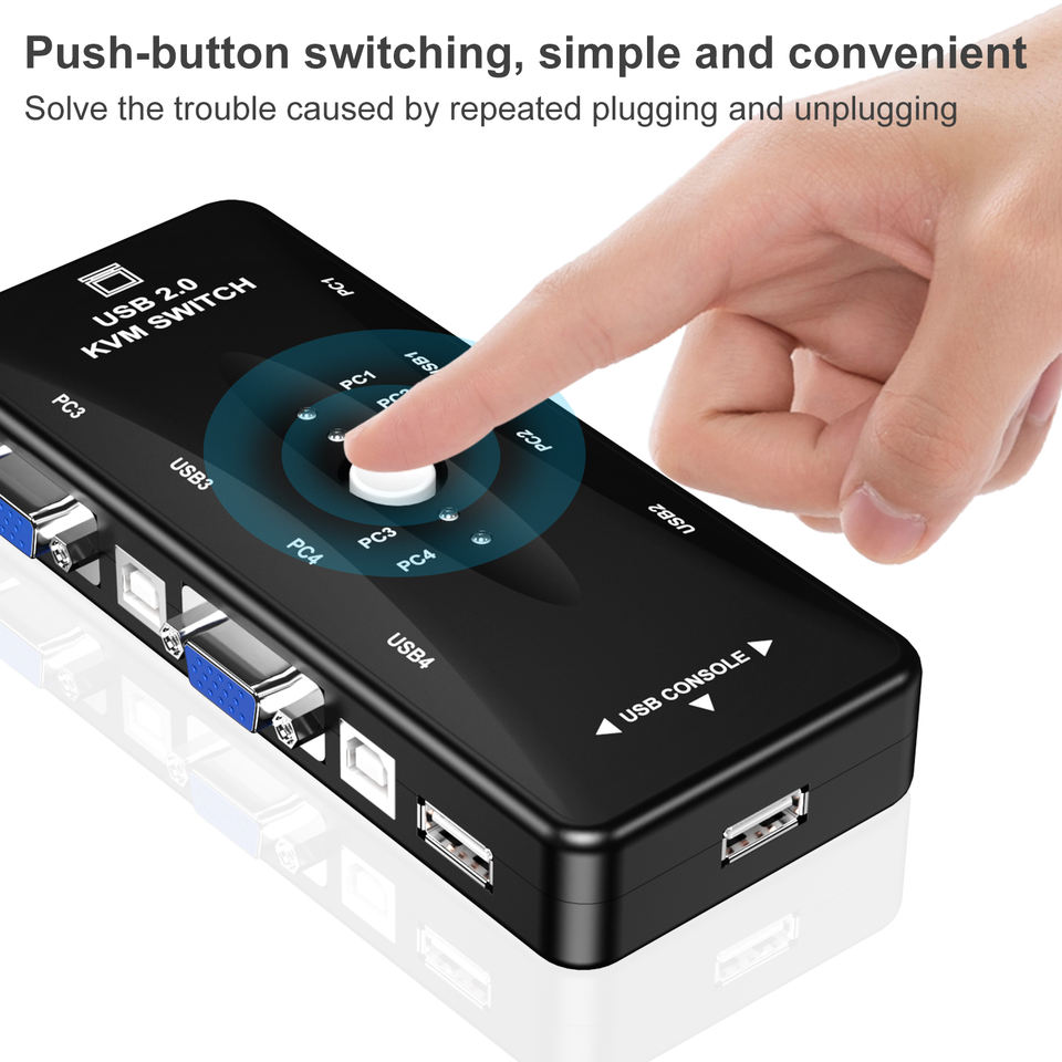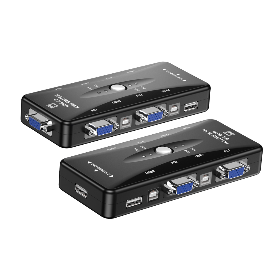 Répartiteur VGA USB 2.0 à 4 ports avec coque en plastique Imprimante Souris Clavier USB KVM Commutateur VGA Accessoires Audio Vidéo en Stock