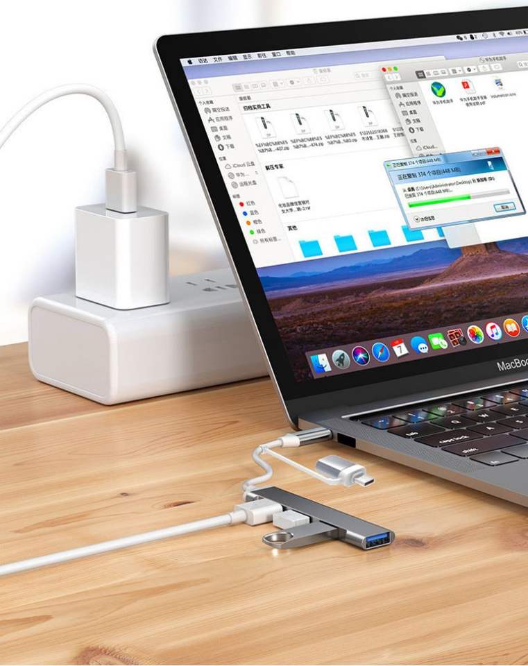 Clé USB tressée à 4 ports Hub 3.0 Ultra-mince pour MacBook, ordinateur portable, Surface Pro, PS4, lecteur Flash