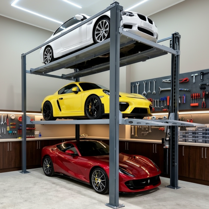 Lève-voiture hydraulique à 4 poteaux, triple empileur, lève-voiture à 4 poteaux pour garage privé, atelier 4S, stockage de voitures en intérieur et en extérieur