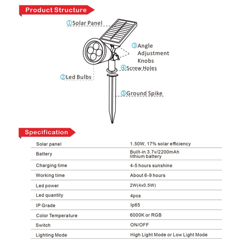 4 projecteurs solaires LED RGB à changement de couleur automatique, étanches, pour jardin, extérieur, paysage