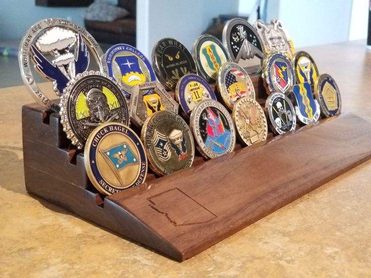 Présentoir en bois pour 4 rangées de jetons de casino et pièces de collection