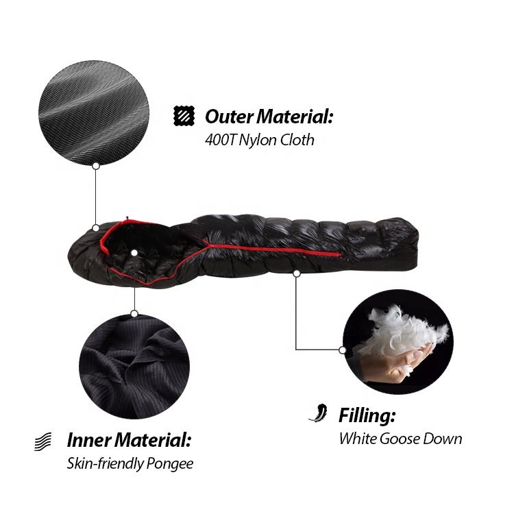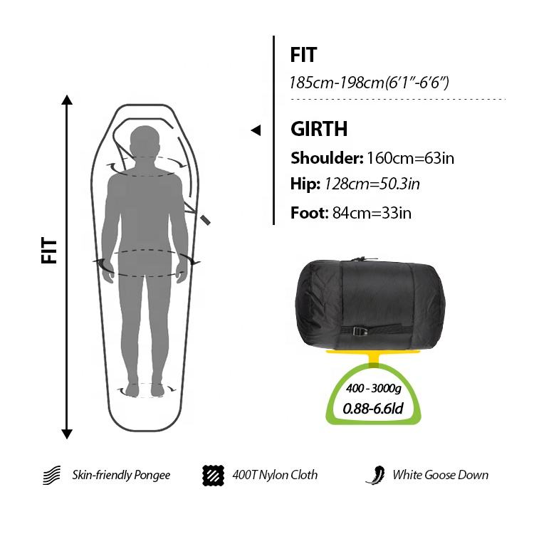 Sac de couchage 4 saisons léger, portable, imperméable, en nylon, avec duvet d'oie blanc, type enveloppe, avec sac de compression