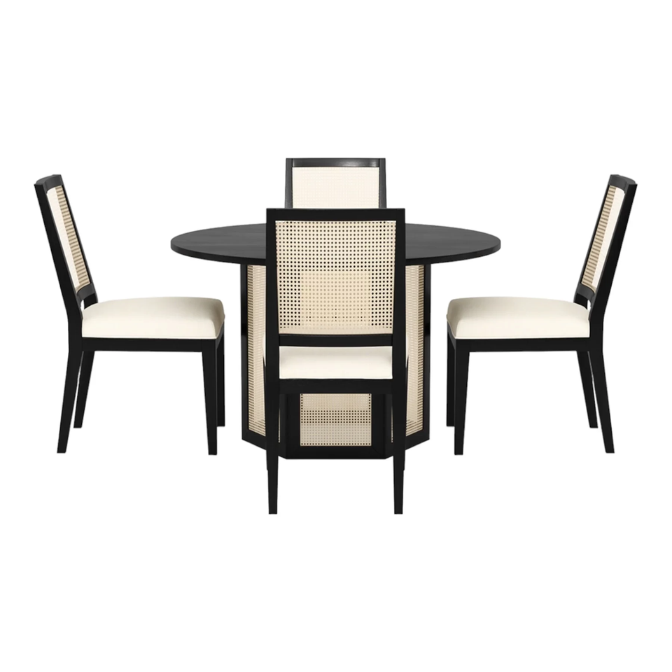 Ensemble de salle à manger 4 places en bois de manguier massif et rotin avec chaises, construction robuste, design tressé élégant, confortable